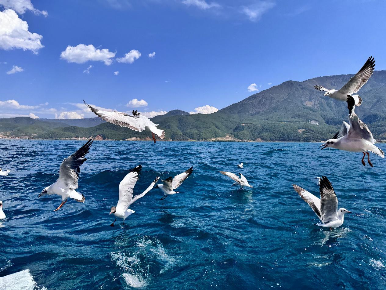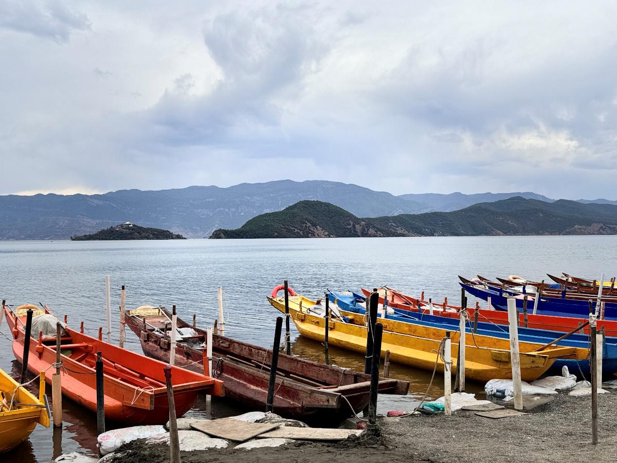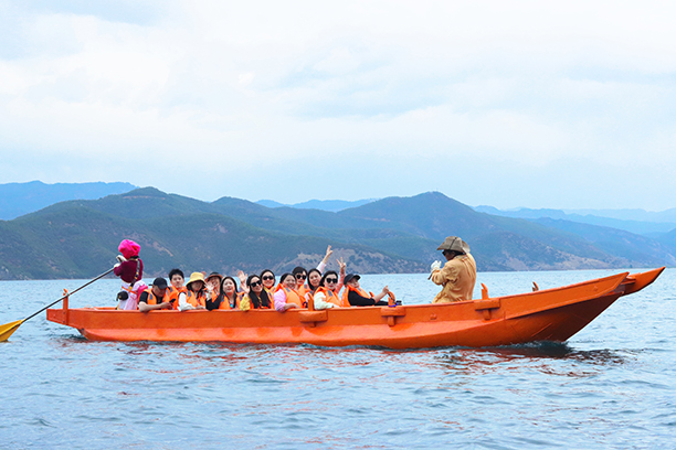 瀘沽湖宛如群山中的一顆藍(lán)寶石,瀘沽湖畔,豬槽船悠悠地飄蕩,摩梭人用他們自己的語言和故事,講述著女兒國的浪漫。坐在船上真切感受到湖水的清涼和微風(fēng)的拂面,蕩漾中時間仿佛變得緩慢而寧靜,你可以放下心中的紛擾,沉浸在這片美麗的自然風(fēng)光中,讓自己的心靈得到凈化。