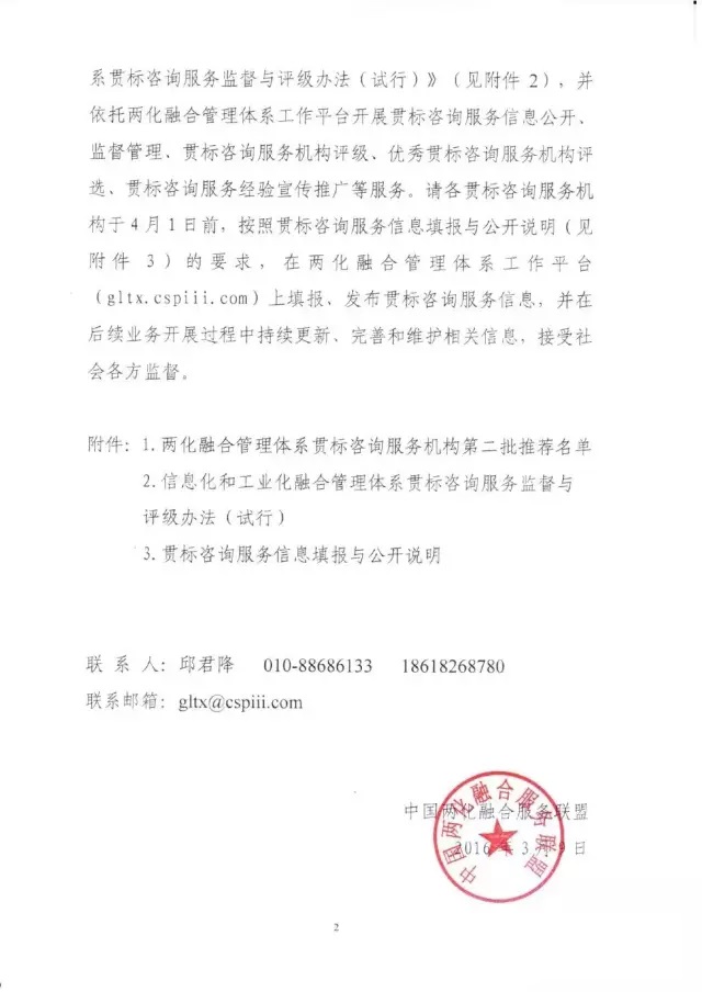 2015年8月,北京大陸航星質(zhì)量認(rèn)證中心股份有限公司(HXQC)向國(guó)家工業(yè)化和信息化部提交兩化融合管理體系貫標(biāo)咨詢機(jī)構(gòu)的申請(qǐng),經(jīng)過半年審核獲得批準(zhǔn)。