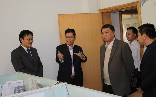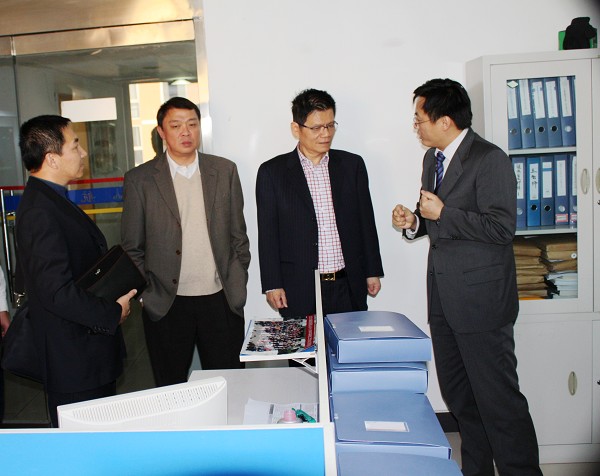 黃博愛董事長、江明首席執(zhí)行長在陸益勤總裁和總裁助理孫敏的陪同下,饒有興致的參觀了各部門的工作。