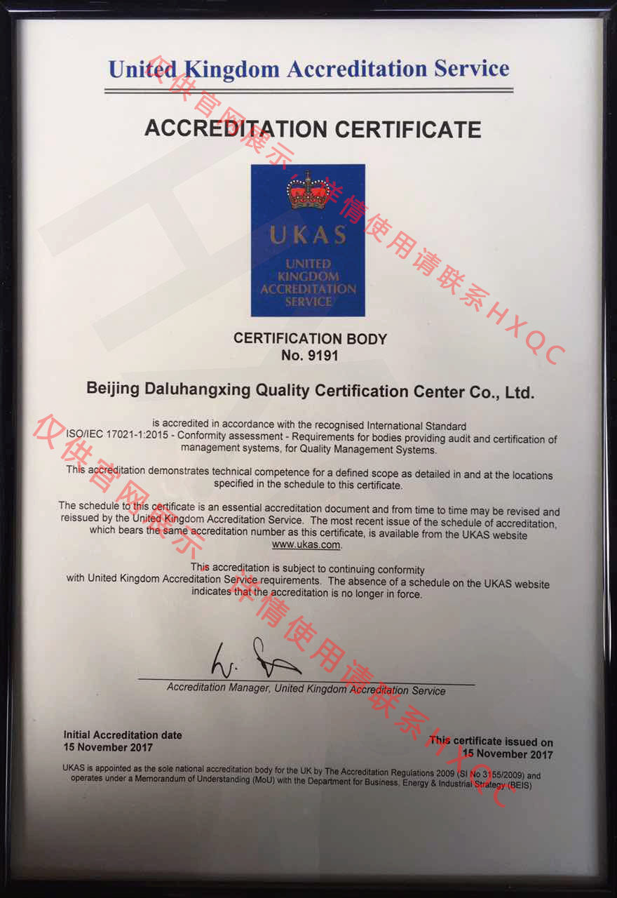 UKAS認(rèn)可證書